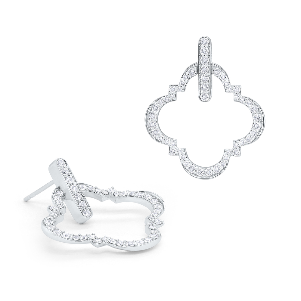 Diamonds over a carat total weight sparkle shine in these modern quatrefoil earrings.