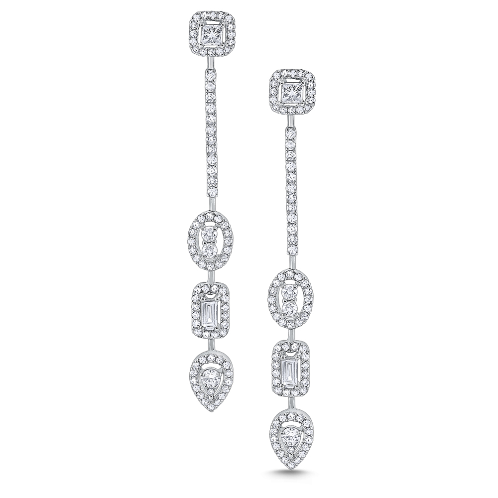 Dare to dazzle in these stylish earrings. Sparkling diamonds hang from the ear in an elegant fashion. Pair it with a matching necklace for a complete look.