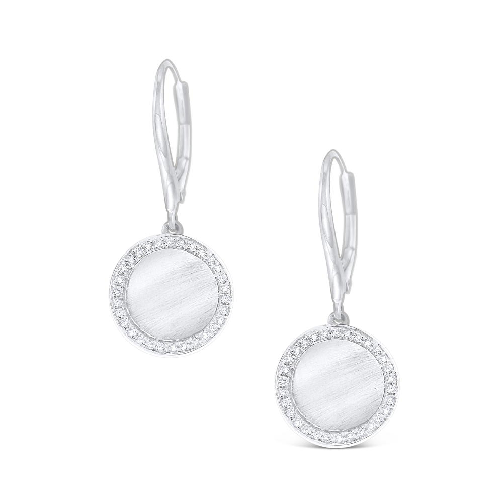 Diamonds border a brushed gold disc that sparkles and shines as it moves. The perfect everyday earring.