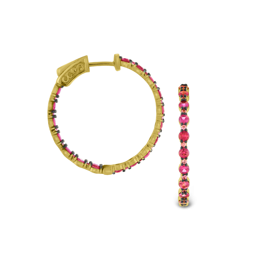 Pink Sapphire Hoop Earrings Set in 14 Kt. Gold