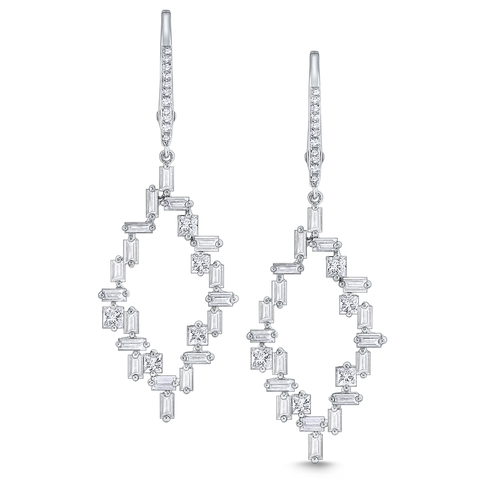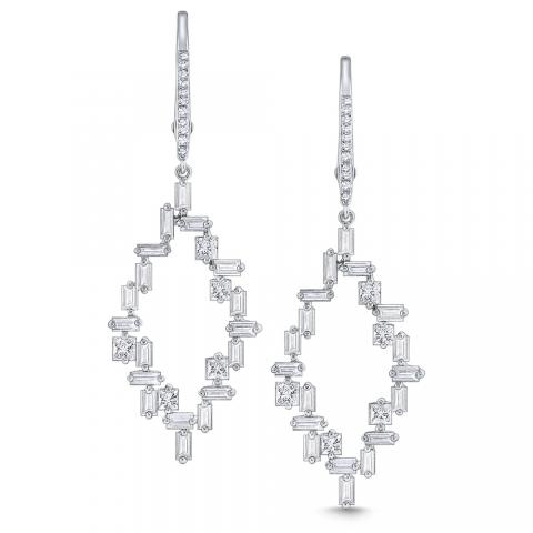 Glittering round diamonds are paired with Shining baguette cuts on a sprinkled diamond frame shape. They will add the perfect elegant edge to any outfit.