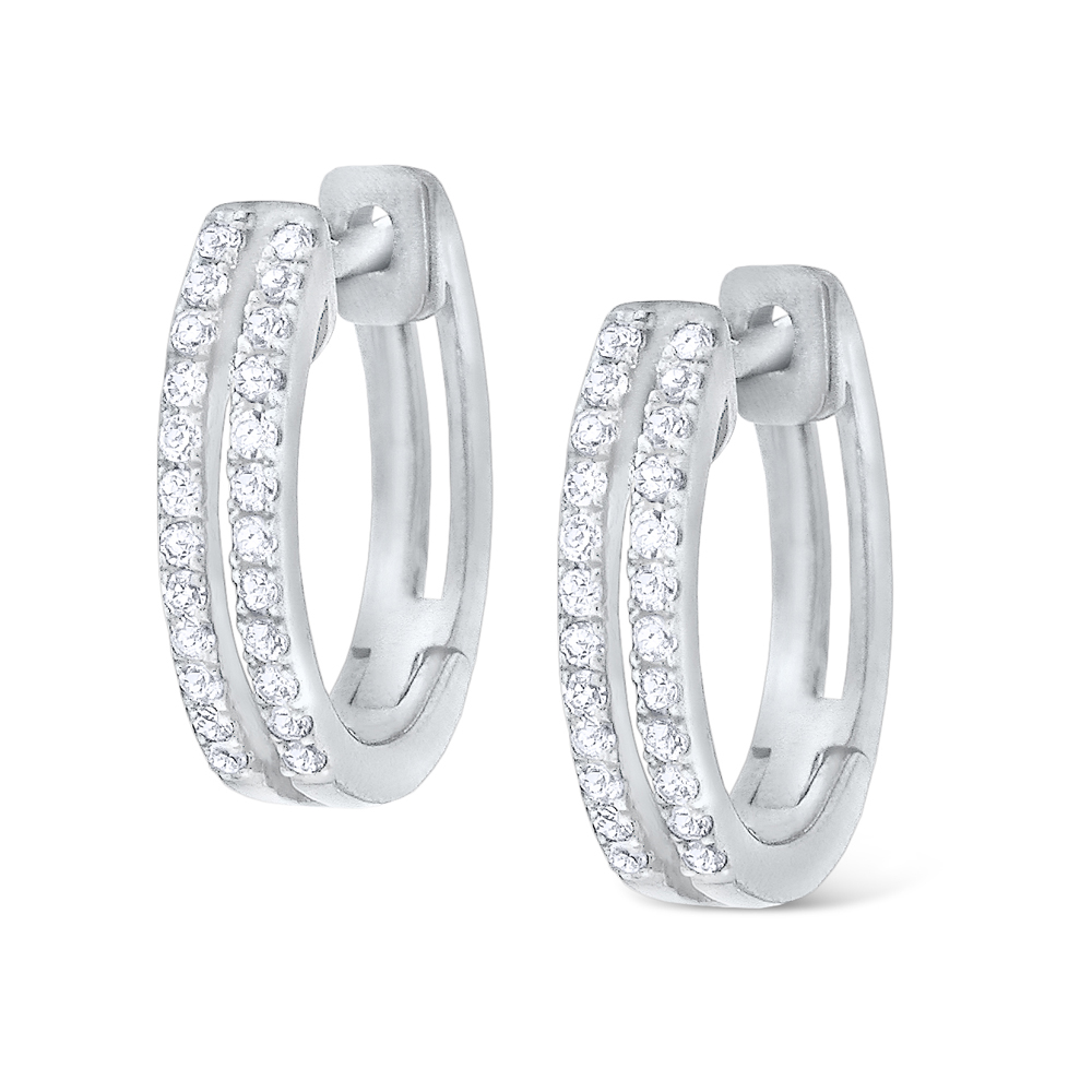 Diamond Double Row Mini Hoop Earrings in 14k White Gold with 48 Diamonds weighing .15ct tw.