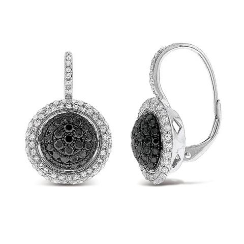 Black And White Diamond Round Earrings in 14K White Gold with 200 Diamonds Weighing 1.09ct tw