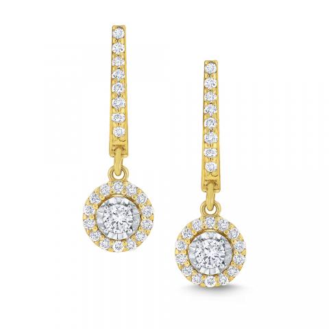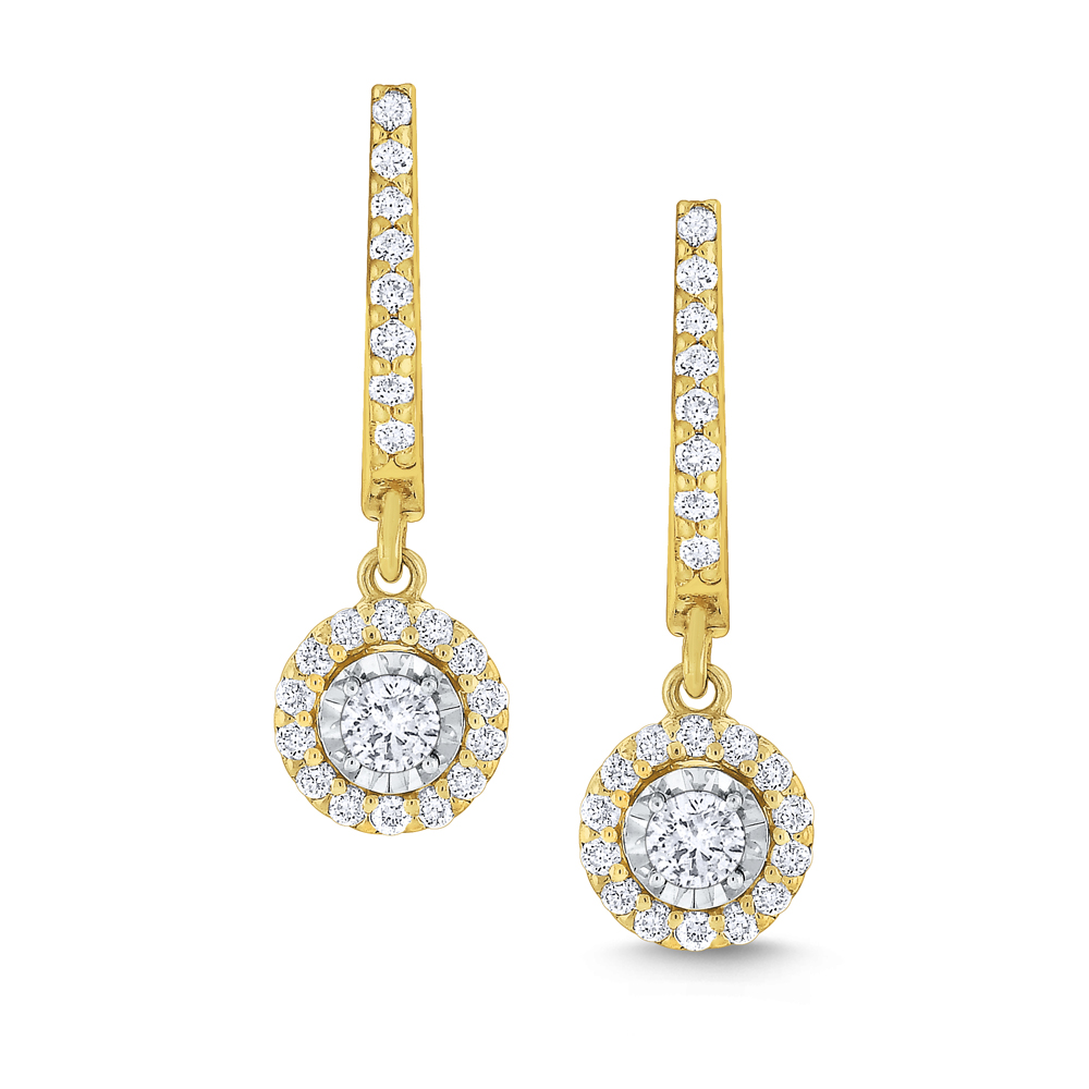 Round Halo Diamond Drop Earrings Set in 14 Kt. Gold