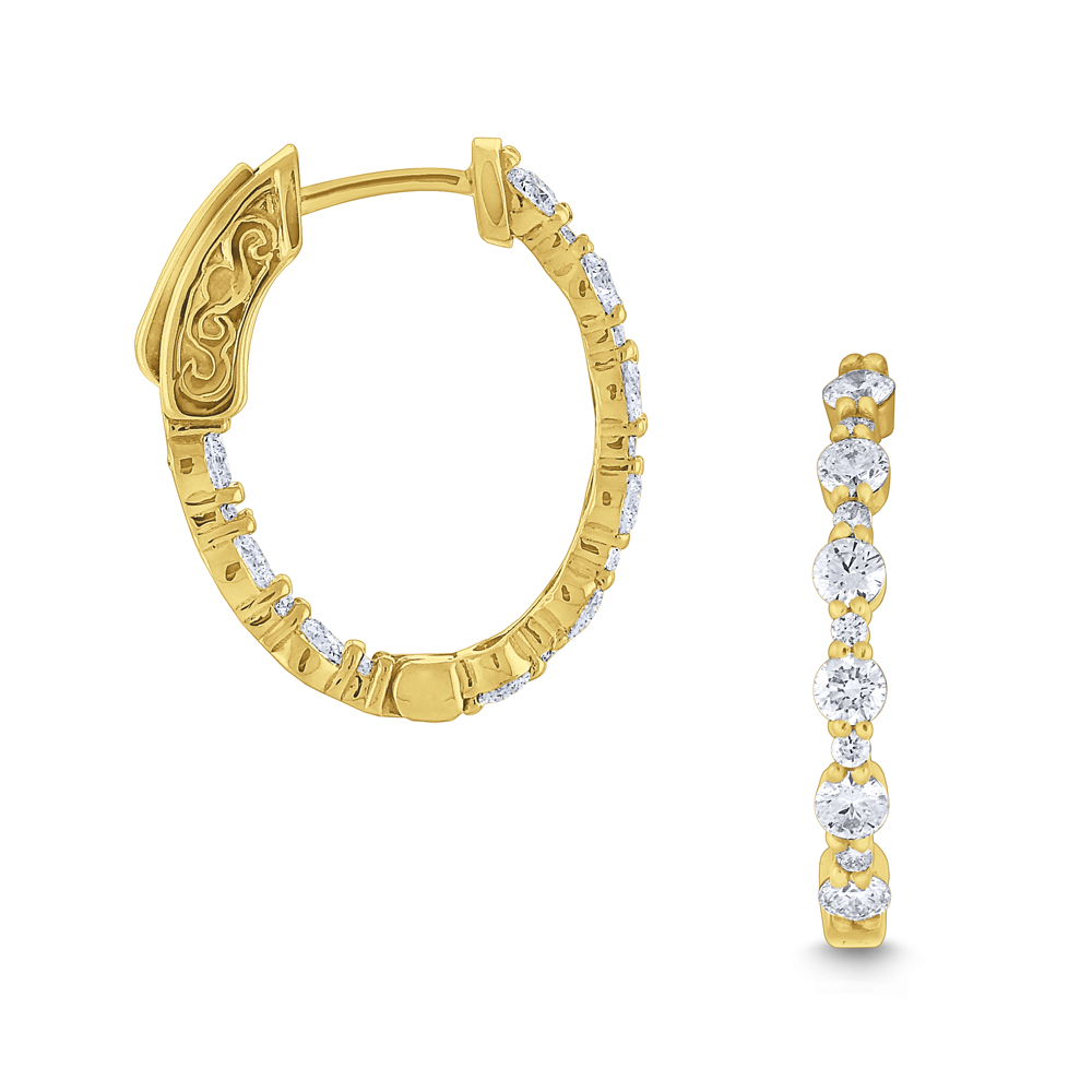 Diamond Oval Hoop Earrings Set in 14 Kt. Gold