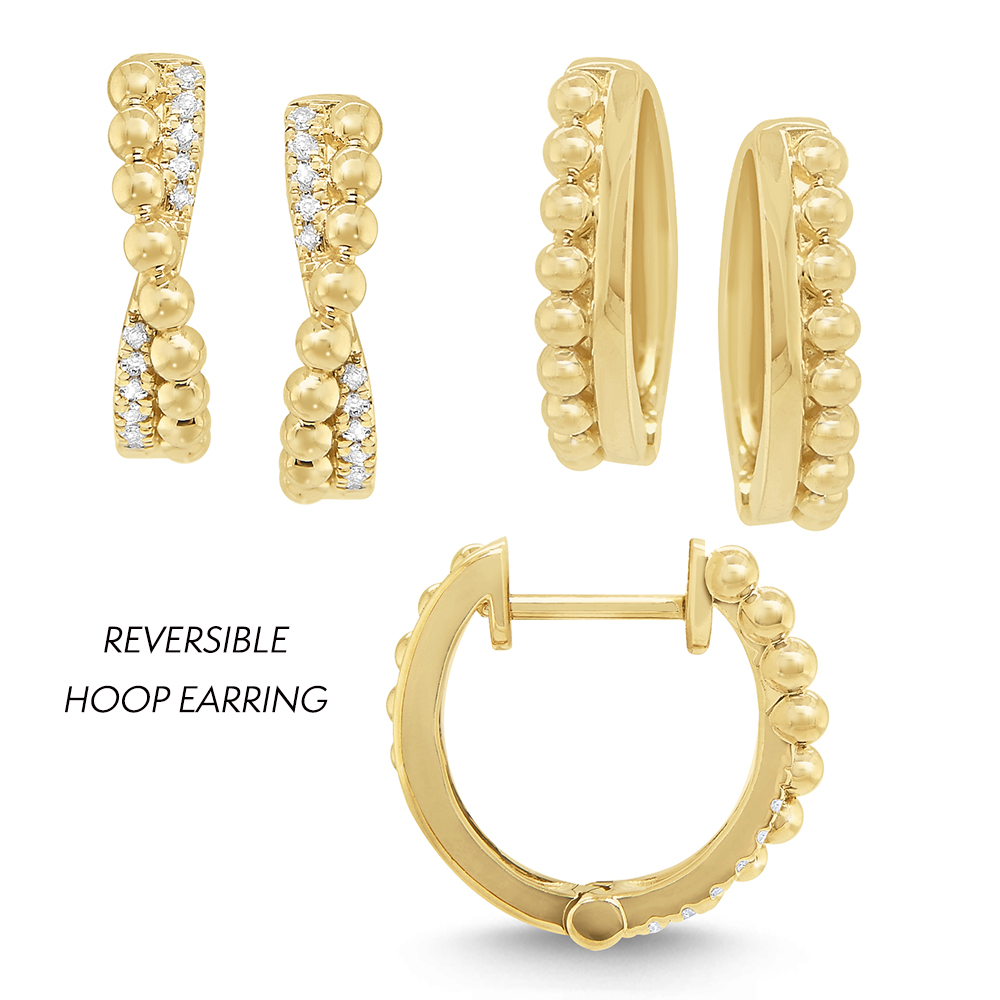 With a continuous design around the entire hoop, you can wear these earrings two ways.