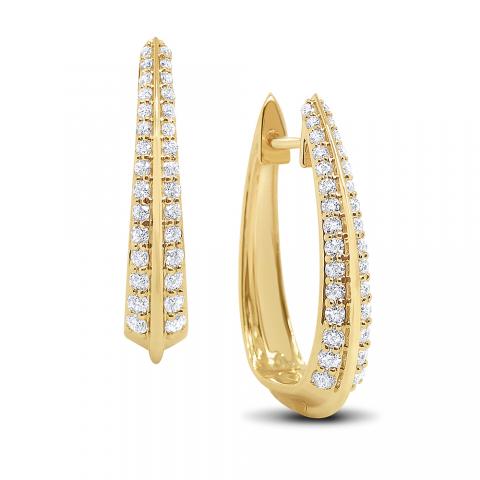Two rows of diamonds are separated by a raised golden blade forming these stunning modern hoops