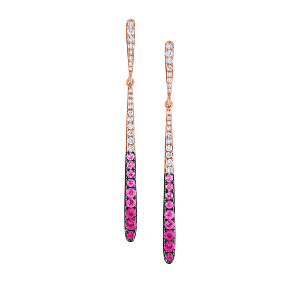 Add a pop of fun color to you look with these chic earrings. Pretty pink sapphires fade into sparkling colorless diamonds for a cool ombré effect.
