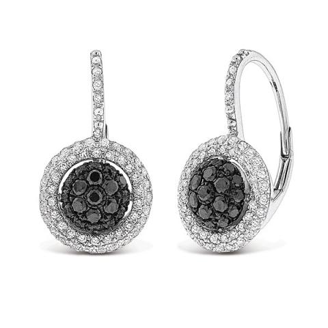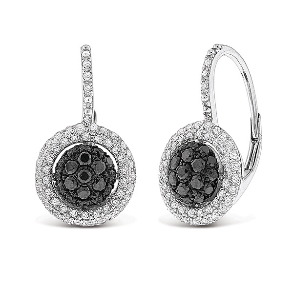 These black and white diamond small circle earrings make a striking statement and they will definitely get you noticed. They glitter and gleam with the reflected light of 140 stunning .75 ct tw diamonds and they are pictured here in white gold and black rhodium. They are the perfect accent piece for your next formal occasion.