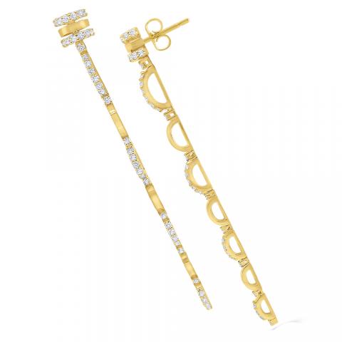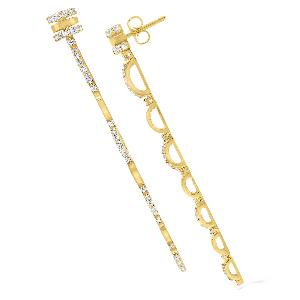 Gold and diamond 'rolling' segments connected in a linear pattern make up these stunning drop earrings. Each segment is flexible allowing for playful movement when worn.