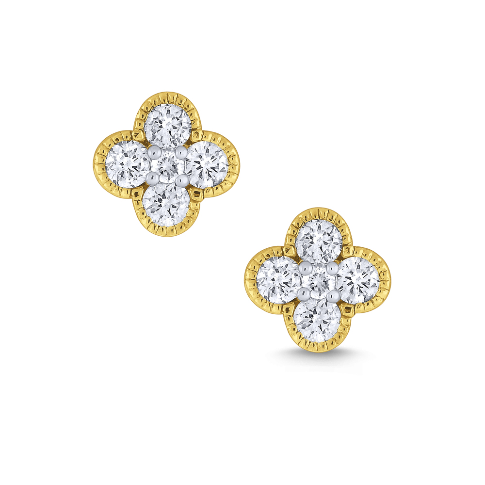 These lucky clover diamond earrings are just the touch. Wear them solo or with our star and moon studs for a fun playful look.