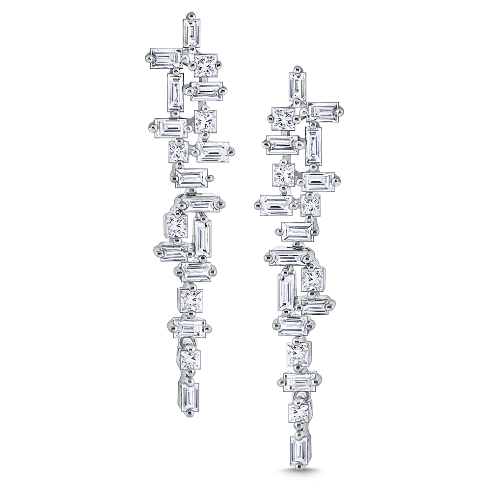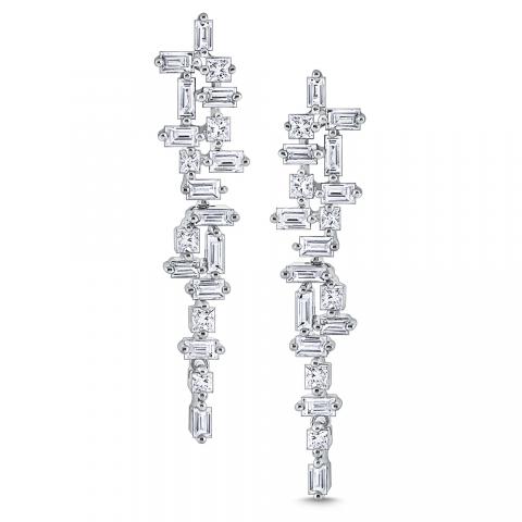 Inspired by ancient mosaic art, these earrings are featured in KC Designs Mosaic Collection. Glittering round Brilliant diamonds are paired with shining baguette cuts to cascade elegantly down from your ear.