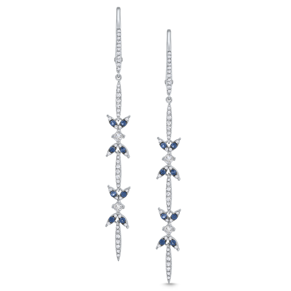 Cerulean blue sapphires & glittering diamonds dangle elegantly from the ear, adding a pop of cool color to your look.