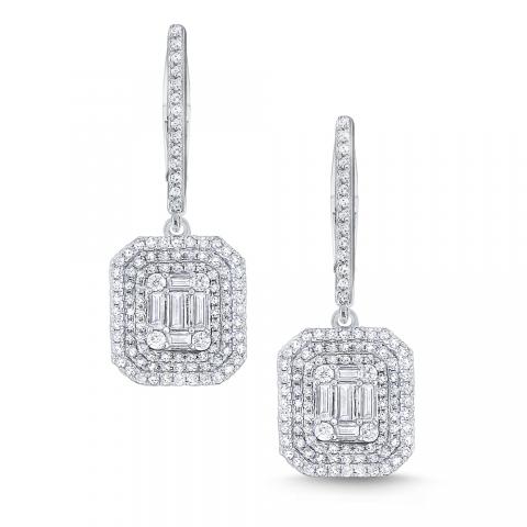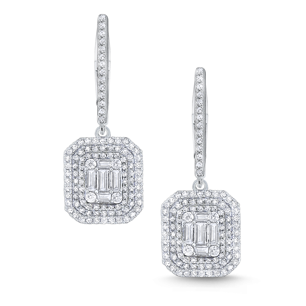 Light up your look with these chic earrings. Part of KC Designs Metropolis Collection, shining baguette cut diamonds are framed by glittering round cuts.