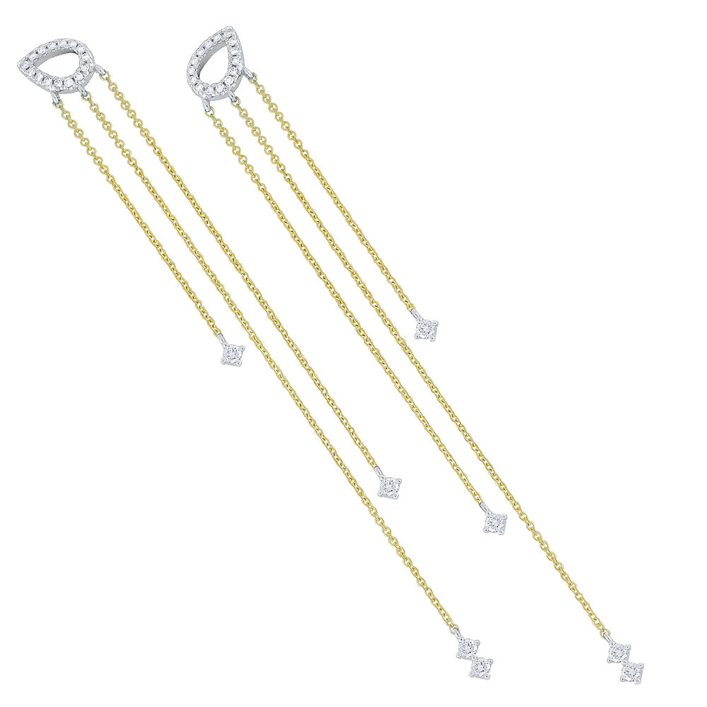 Diamond Hanging Chain Earrings Set in 14 Kt. Gold