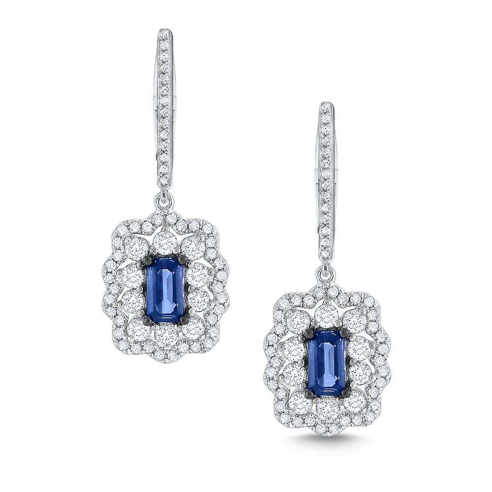 Add a pop of cool color to your look with cerulean blue sapphires that are framed by glittering diamonds.