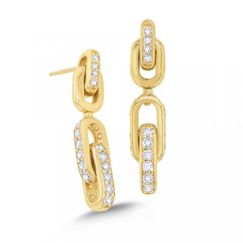 Bold gold is trending....and these earrings fit the bill! Stunning in 14k gold, 4 moveable links shine with 56 glittering diamonds totaling 1.56ct tw.