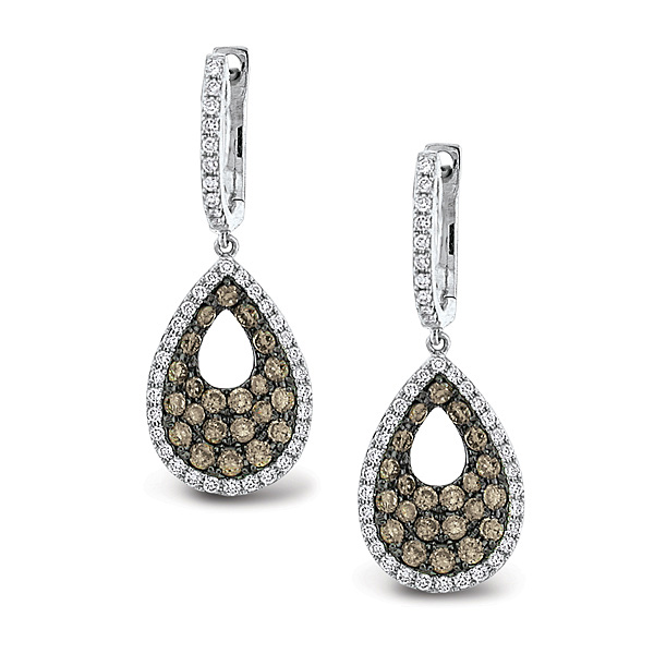 Champagne And White Diamond Teardrop Earrings in 14k White Gold with 124 Diamonds weighing 1.24ct tw.
