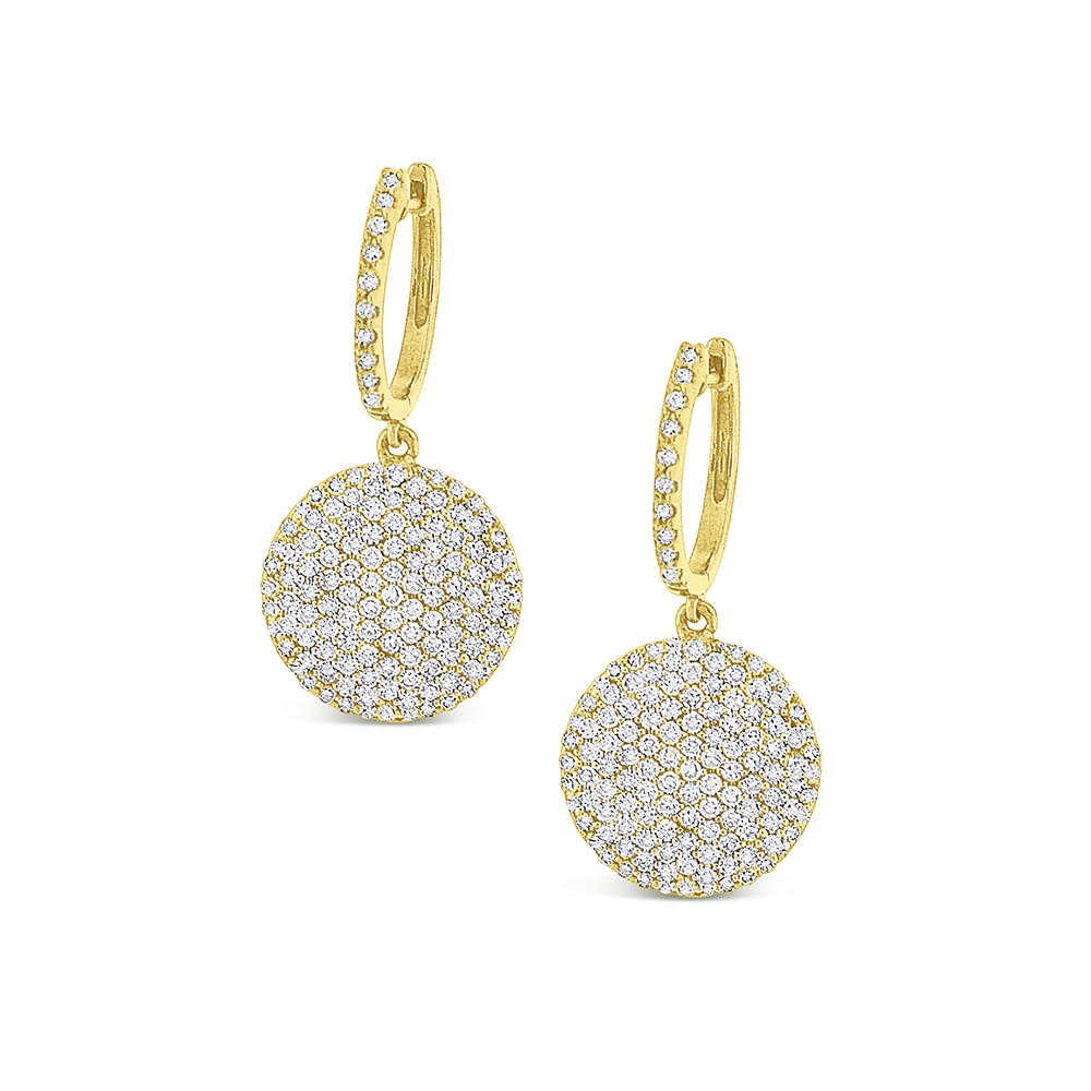 Diamond Disc Earrings in 14k White Gold with 238 Diamonds weighing 1.26ct tw.