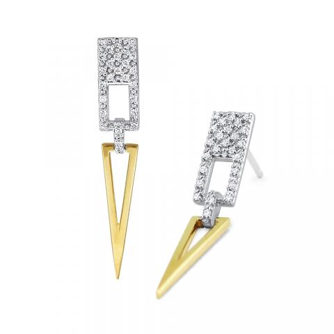 Simple geometric design in two tone gold and diamonds make these earrings right on trend.
