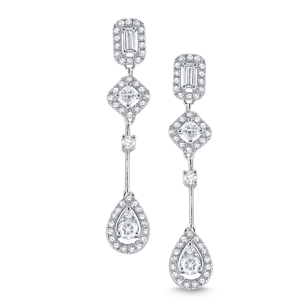 These 14k gold earrings drop beautifully below the ear, accented with 94 dazzling diamonds in various shapes.