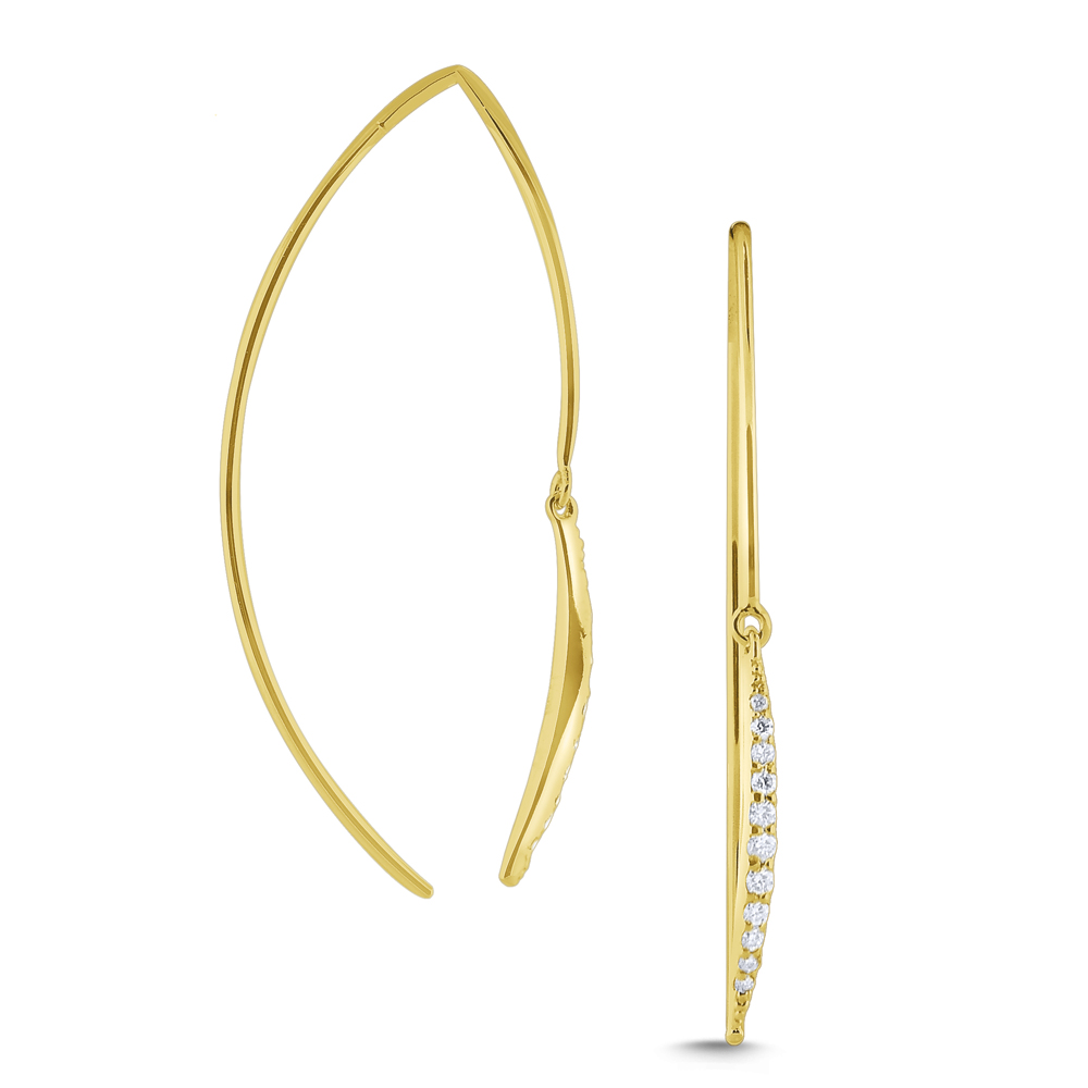 14k Gold and Diamond Modern Wire Arc Earrings