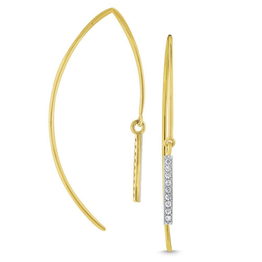 A simple diamond bar hangs elegantly below a modern golden wire for a fresh and simple look.