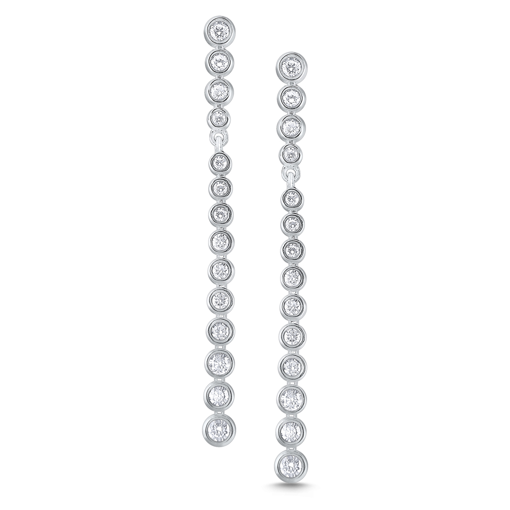 Bezel set graduated diamonds make up these elegant and sophisticated line earrings.