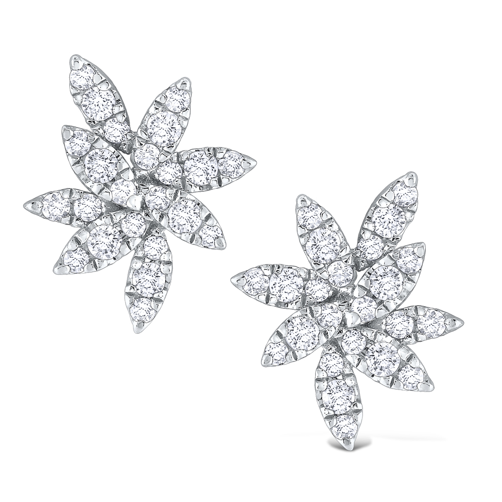 Round diamonds are set in gold marquis shapes to create these elegant laurel leaf earrings.