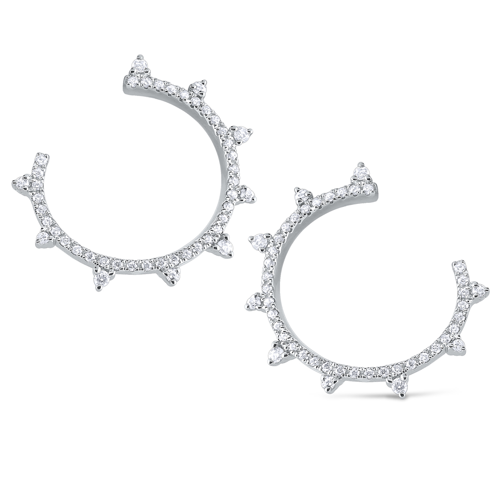 Add a little edge to this season’s trend with these arc earrings accented with diamond spikes.