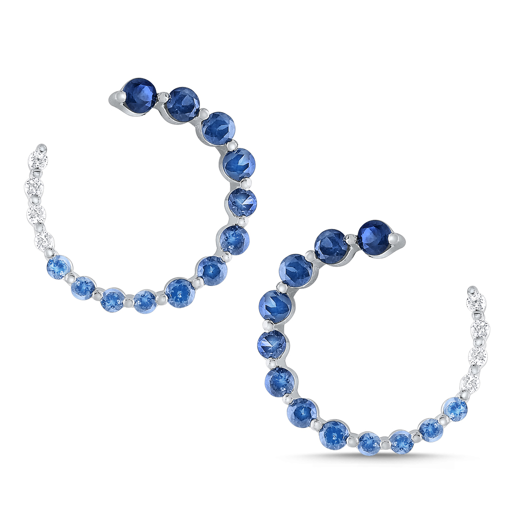Diamond and Blue Sapphire Ombre Arc Earrings