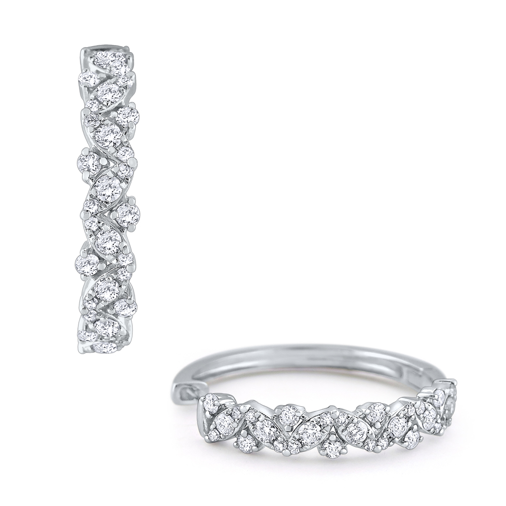 We added a bit a modern flair to the average diamond hoop by mixing up round and marquis shapes. A fresh look to add to your hoop collection.