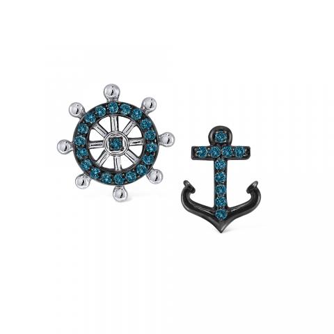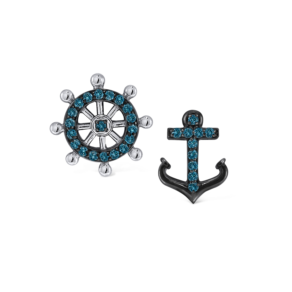 Bring some blue to the beach this summer with these adorable blue diamond anchor and ships wheel mis-matched earrings.