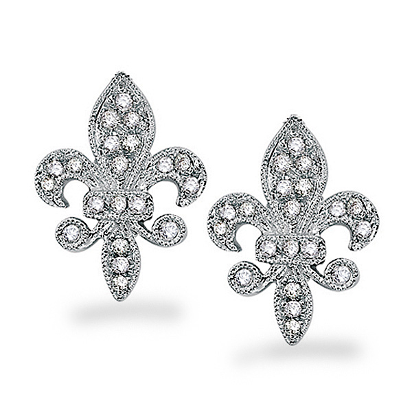 The Fleur de Lis has been an important symbol of French culture and the French monarchy for many centuries and this classic symbol is recreated here in high quality style. These diamond fleur di lis earrings are decked with 40 gorgeous .20 ct tw diamonds and are shown in white gold. You will be dazzled by their superb intricacy.