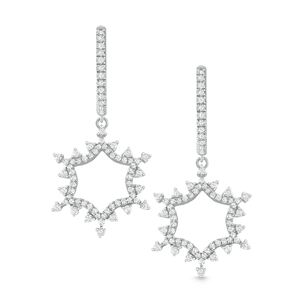 Gold and diamonds crafted in a delicate snowflake pattern swing below classic diamond hoops. Pair with the matching necklace N8980.