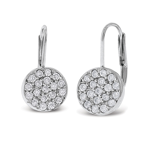 Diamond Small Disc Earrings in 14k White Gold with 38 Diamonds weighing .38ct tw.