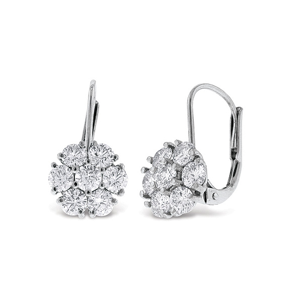 Diamond Cluster Drop Earrings in 14k White Gold with 14 Diamonds weighing 1.07ct tw