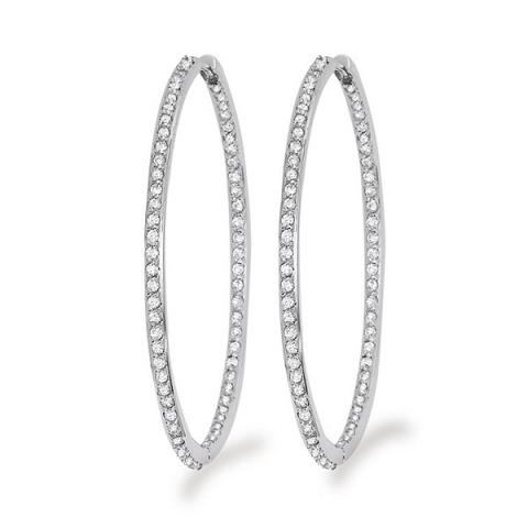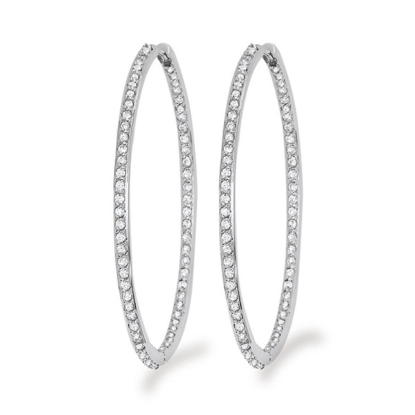 Diamond Inside Outside Hoop Earrings in 14k White Gold with 132 Diamonds weighing 1.35ct tw.