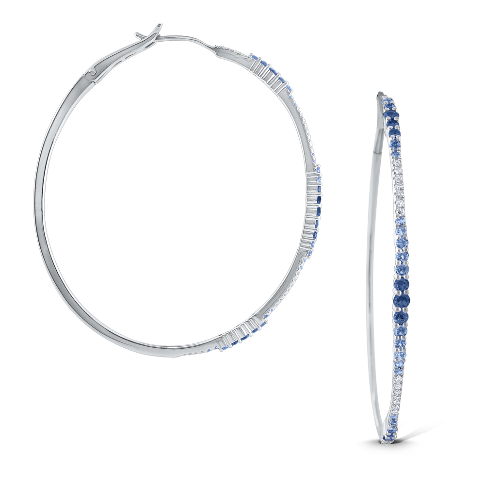 Blue sapphires and diamonds with an ombre effect make up these unique over-sized diamond hoops.
