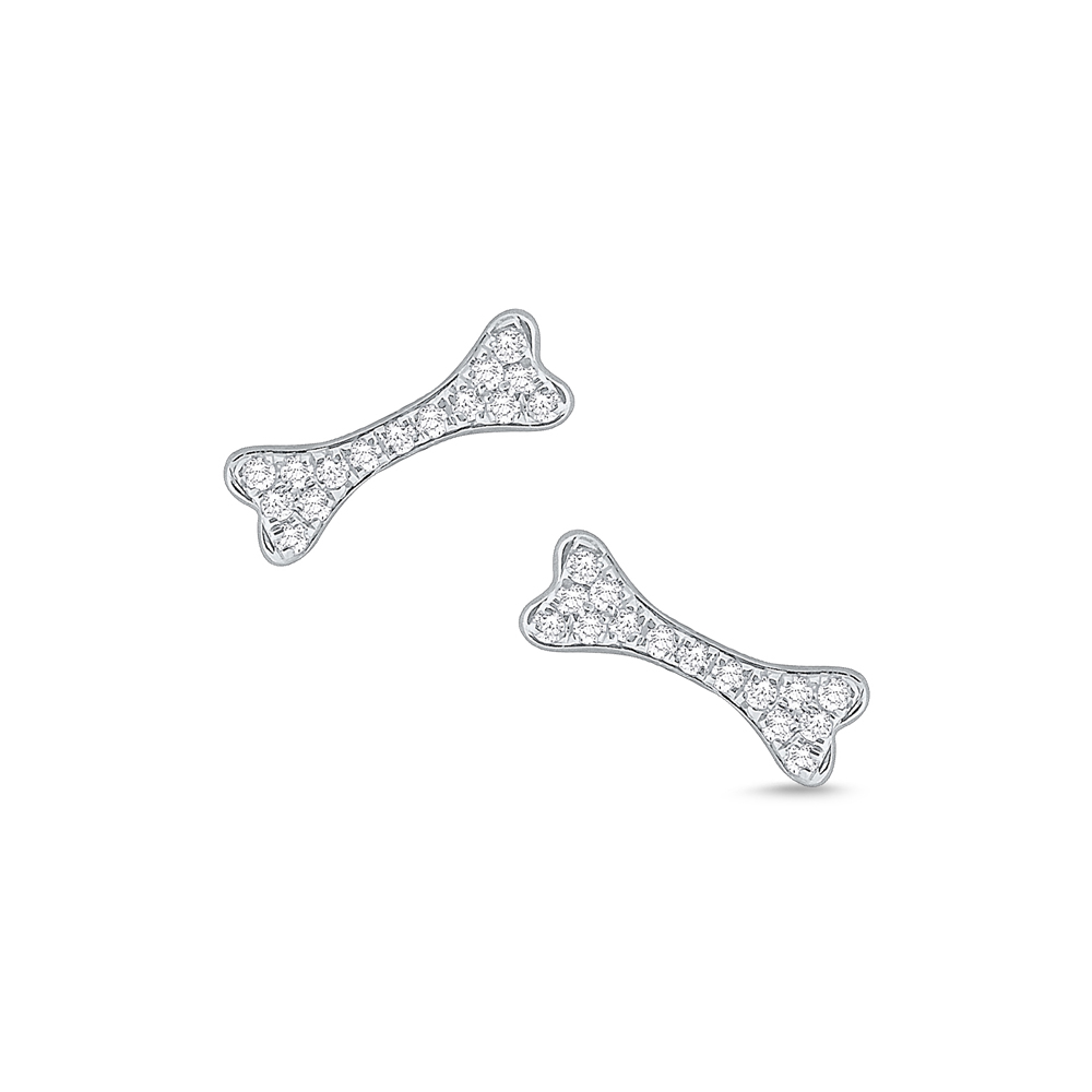 For all you dog lovers, the perfect accessory....14k gold and diamond dog bone stud earrings. Wear them with one of our dog paw necklaces to complete the look.