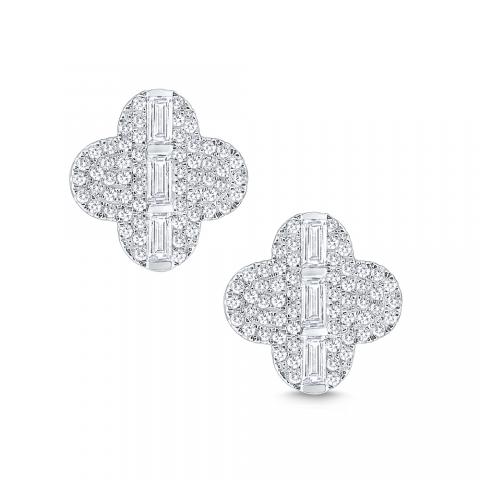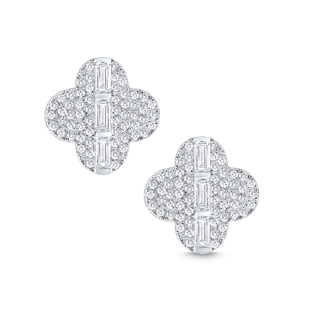 Pave set diamonds surround a row of baguettes in these stunning clover earrings.