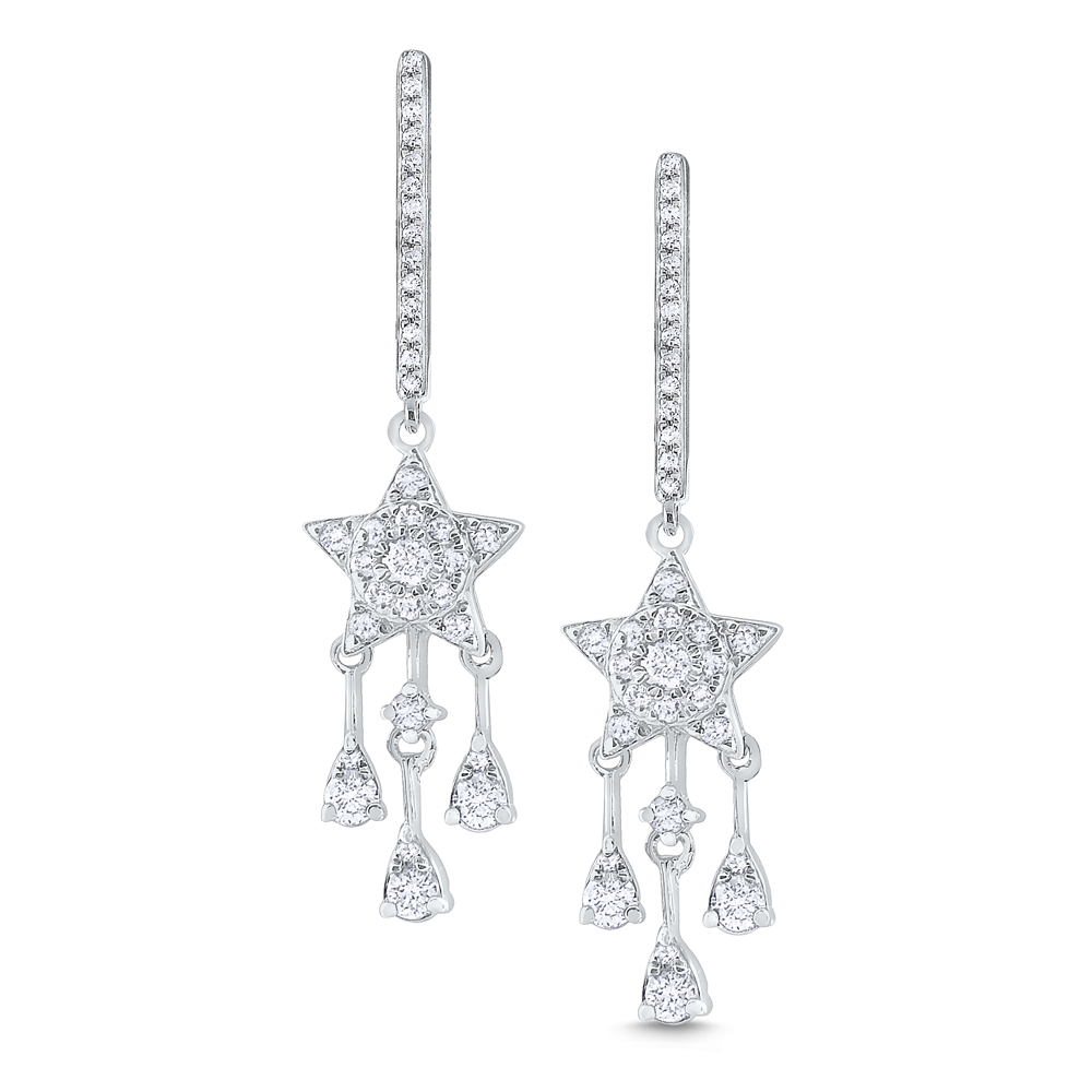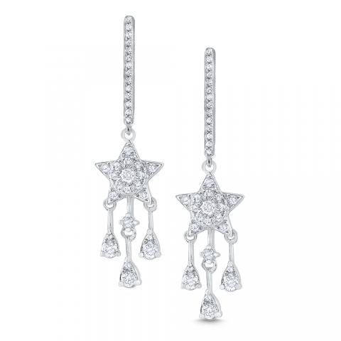 Shining diamond stars playfully dangle below diamond hoops. Add to the look with any of our mix and match celestial studs.
