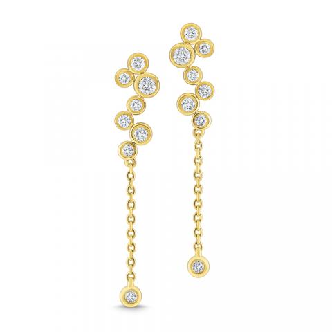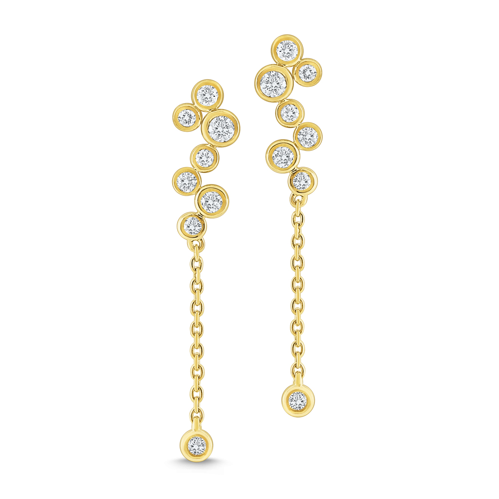 Why settle for champagne bubbles when you can have gold and diamond bubbles? One charming diamond bubble hangs below a cluster for a bit of fun sparkle on the ear.
