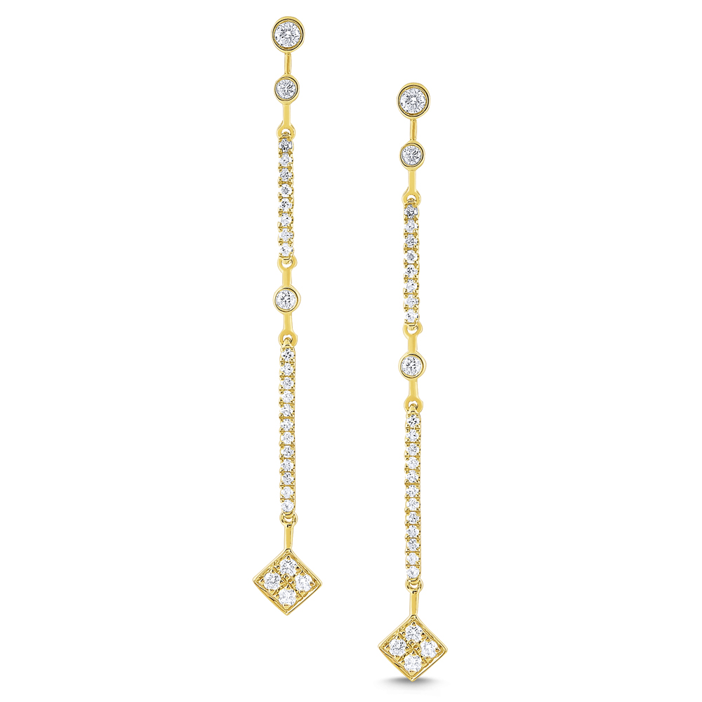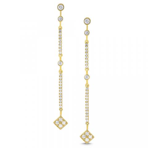 Right on trend, diamonds form a linear pattern that delicately drop below the ear. Compliment with a simple diamond by the yard necklace.