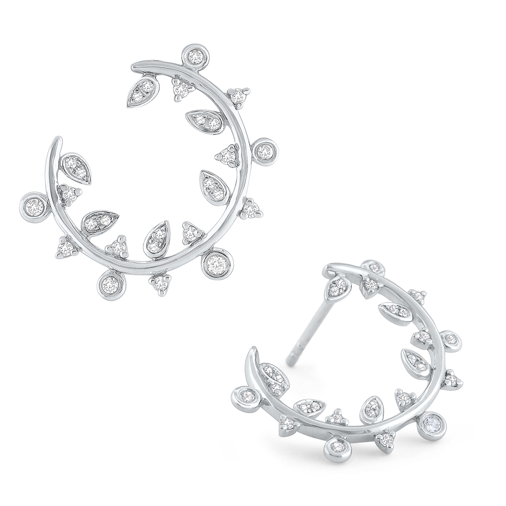 Gold and diamonds form an arc design inspired by floral vines that gracefully curve around the ear.