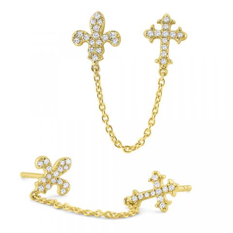 14k Gold and Diamond Fleur-de-lis and Cross Single Earring