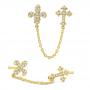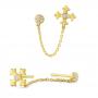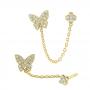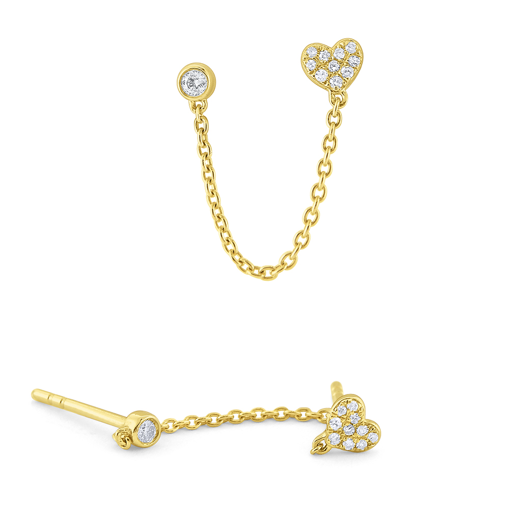 A sweet heart and diamond stud are joined together with a golden chain to be worn in two piercings. Sold as a single earring.
