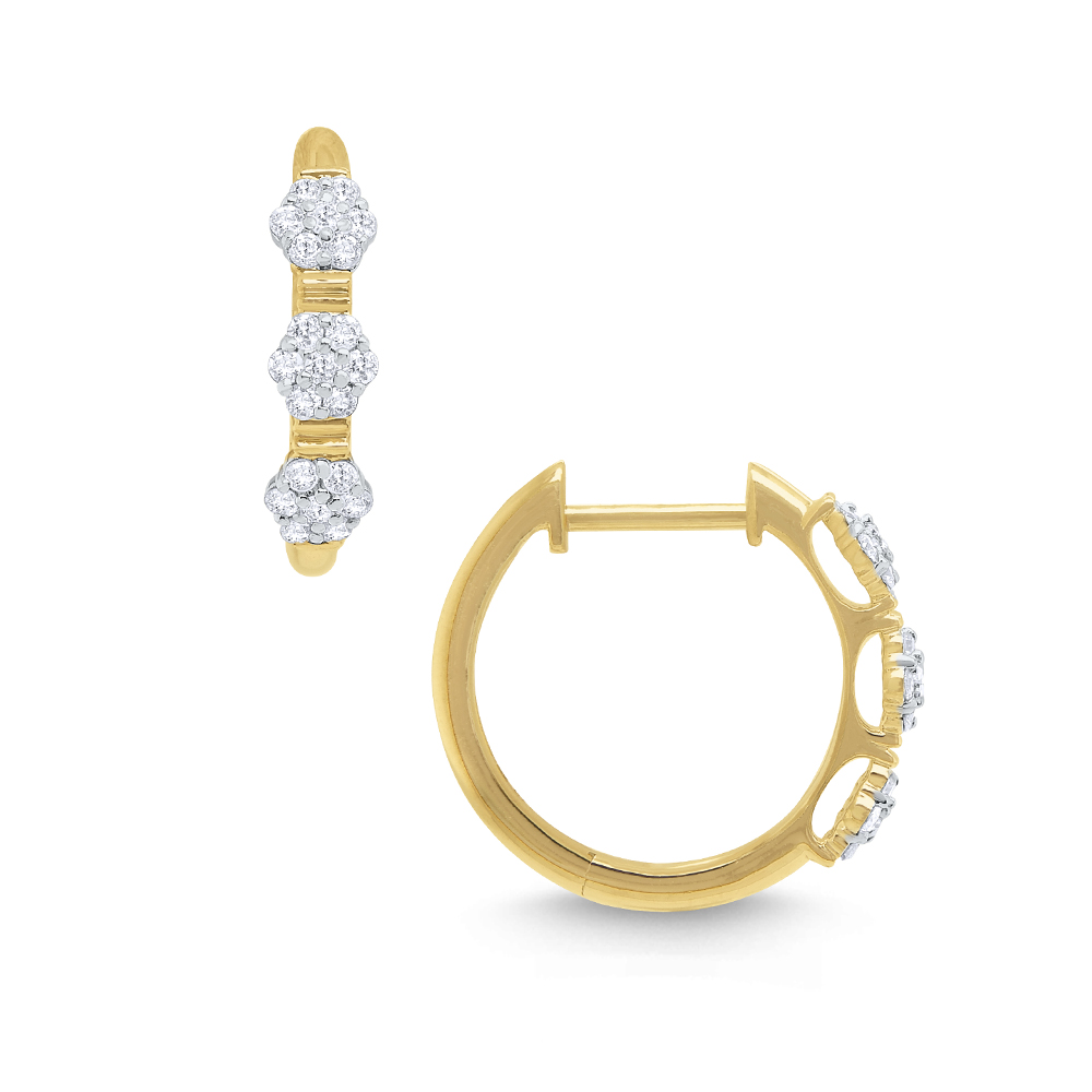 Golden hoops with three diamond clusters make up these perfect everyday earrings.