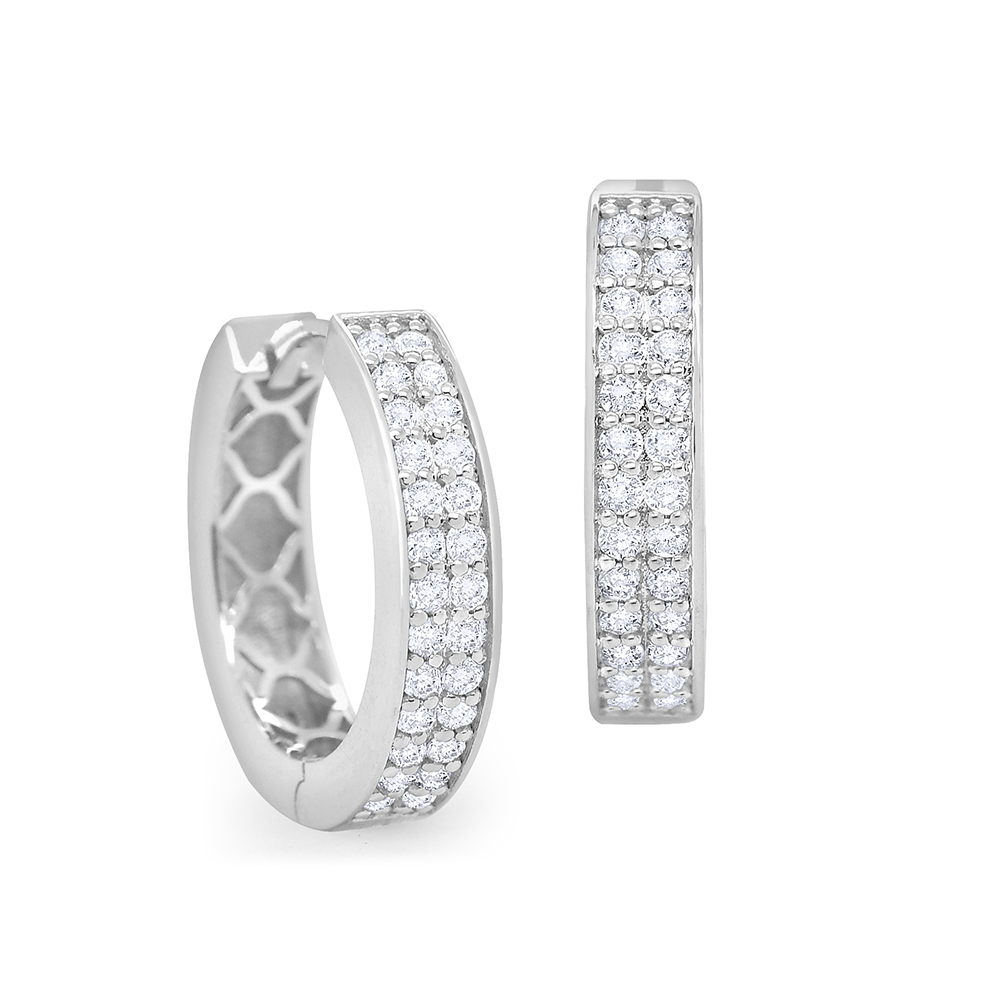 These modern hoop gold earrings with a double row of diamonds are perfect for every day. Available in three sizes.