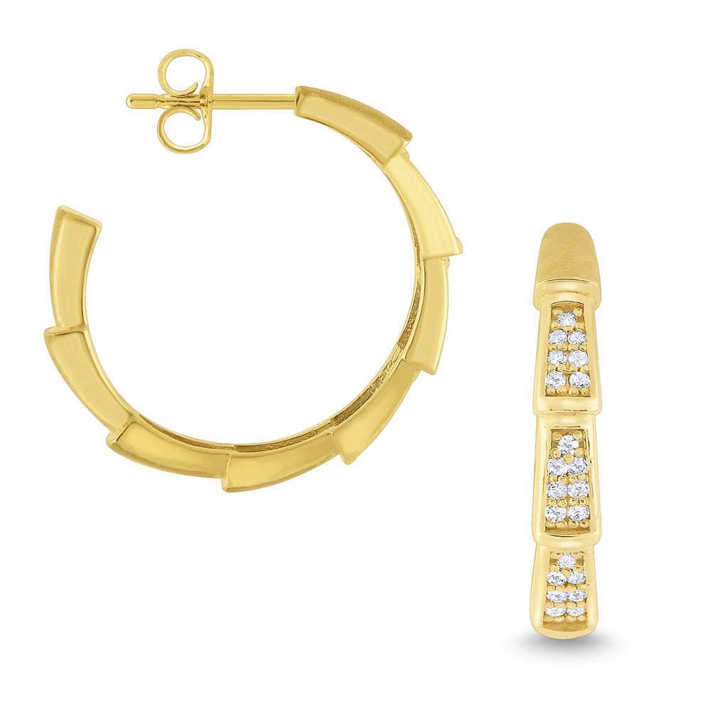 Gold and pave diamonds make up these modern hoop earrings, inspired by the slithering snake.